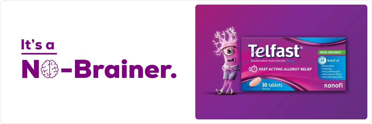 This innovation allows it to work directly on allergy symptoms without affecting your brain. As a result, Telfast® offers effective symptom relief that keeps you alert and ready to live life fully.