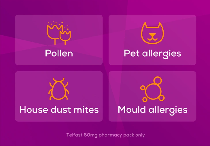 Telfast® 60mg pharmacy pack is used to relieve the symptoms of seasonal and perennial allergic rhinitis. Telfast® works by blocking the action of histamine which causes these unwanted effects. Telfast® is a non-sedating antihistamine which means it does not make you drowsy or slow down your reactions.