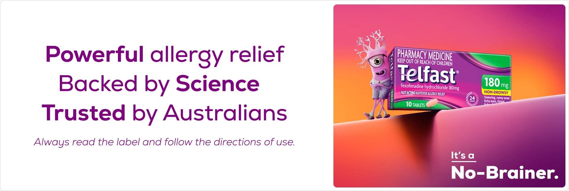 Places to be and people to see, we get it, life is full of unmissable experiences. Telfast® works quickly because of its active ingredient, which absorbs fast and targets allergy symptoms and provides non-drowsy hayfever allergy relief.